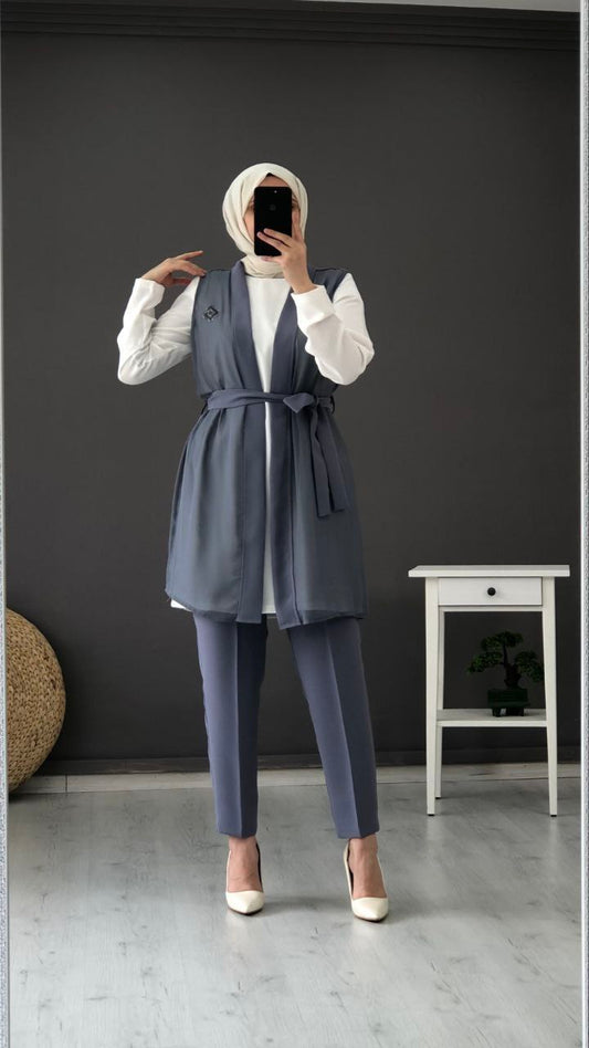 Grey Chiffon Vest Set