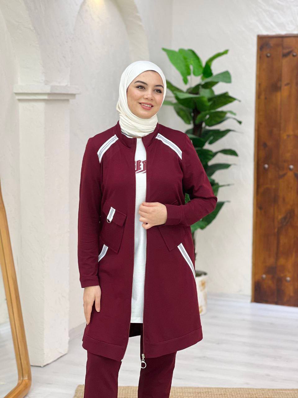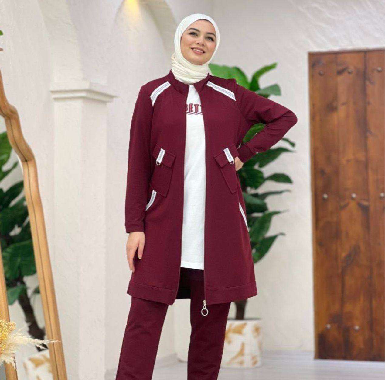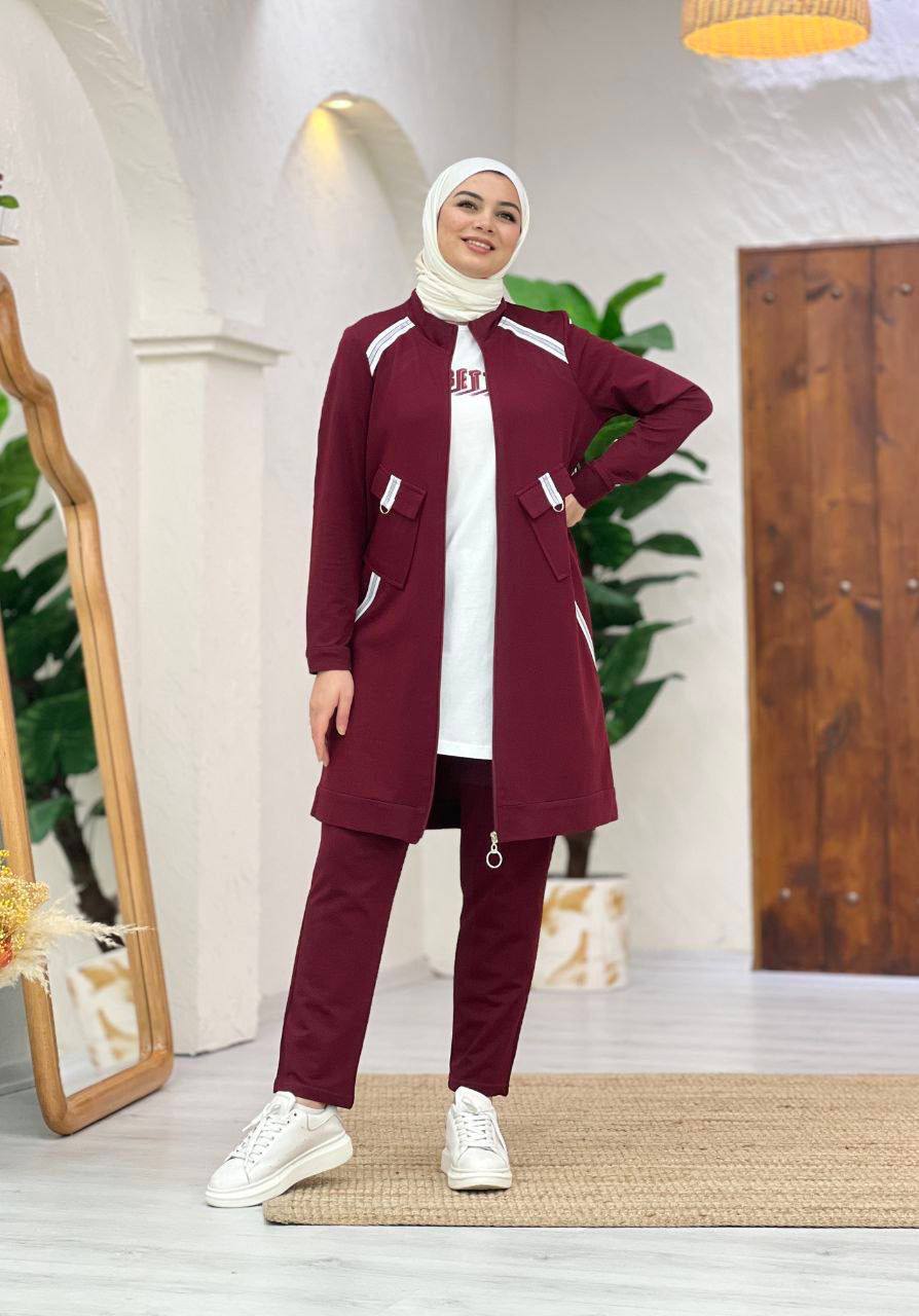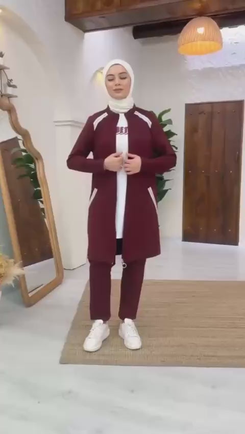 Introducing the Burgundy Tracksuit 3 Piece Set, crafted with high-quality cotton for a comfortable and relaxed fit. The modest design adds a touch of sophistication to your athletic wear. Upgrade your workout attire with this versatile and stylish set.